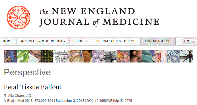 El 3 de Septiembre de 2015, la revista médica más prestigiosa del mundo, el estadounidense "New England Journal of Medicine", ha publicado un editorial defendiendo a Planned Parenthood y un artículo tratando de justificar que usar tejidos fetales de abortos es un bien, un deber médico.